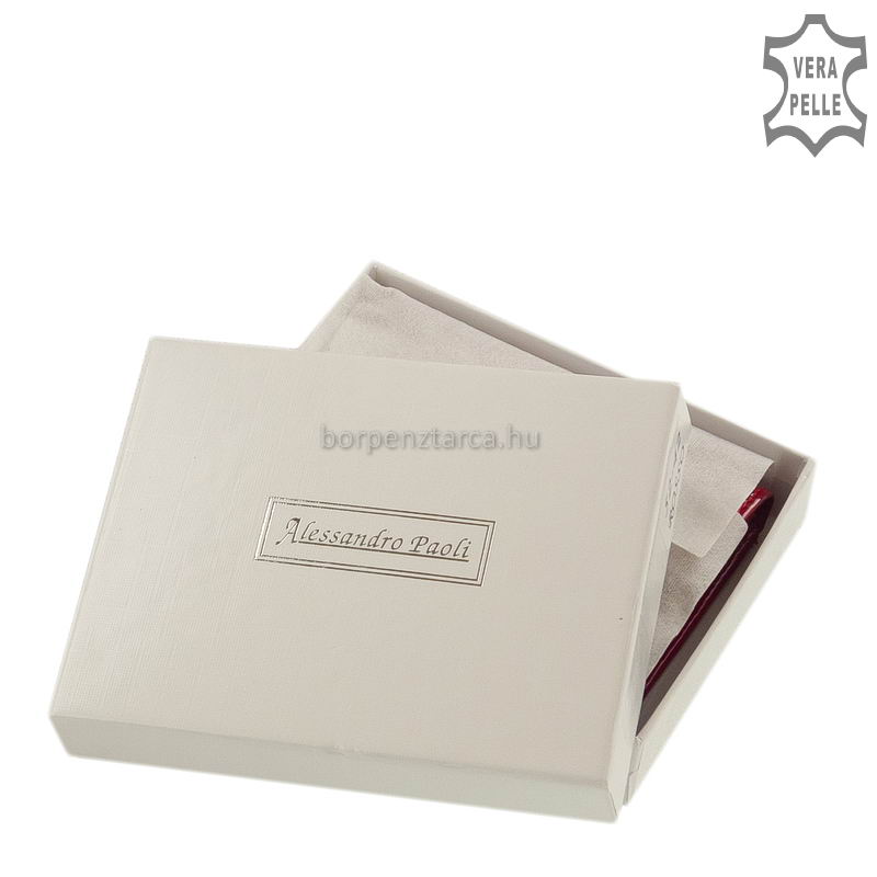 Letisztult, hófehér díszdobozos csomagolást kapott ez a női pénztárca, rajta az Alessandro Paoli márkanévvel.