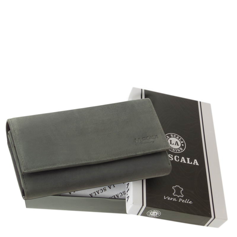 LA SCALA márkás nagyméretű női pénztárca természetes megjelenésű valódi bőr anyagból, RFID védelemmel gyártott díszdobozos modell.
