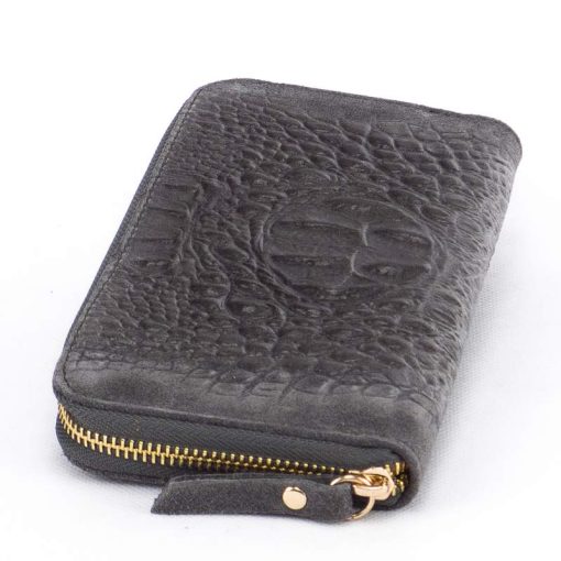 Nagyméretű, cipzáras, kívül préselt krokodil mintával készült olasz női bőr pénztárca prémium kategóriás női modell.