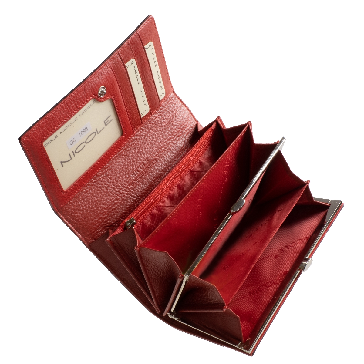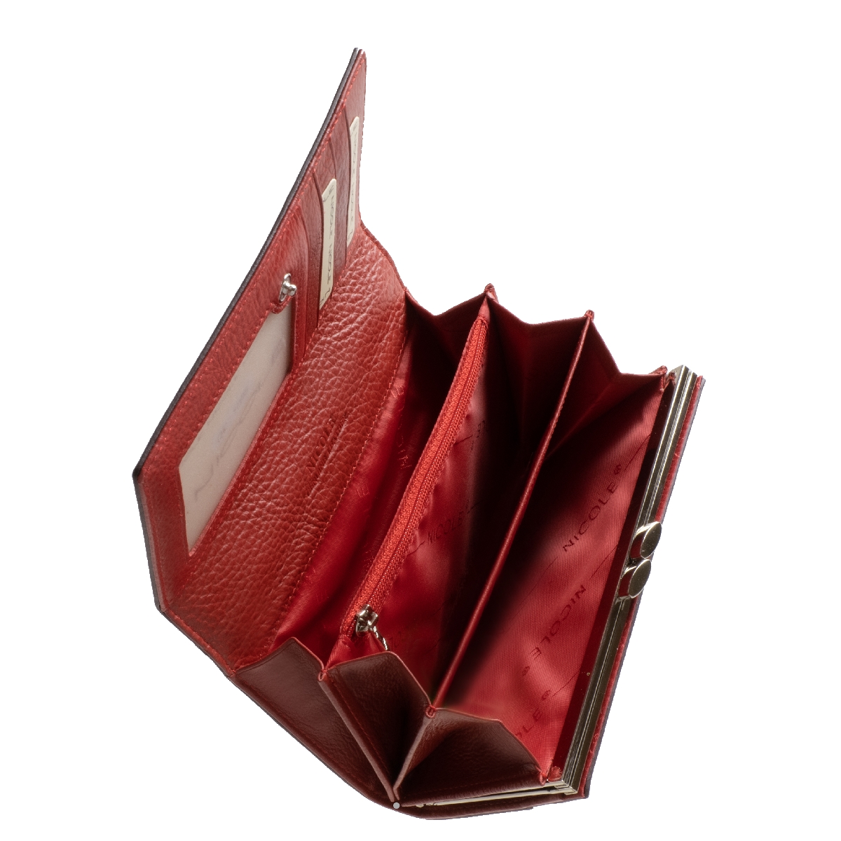 Fényes meggyvörös színe még elegánsabbá teszi a terméket. Patenttal zárható fedelén NICOLE márkajelzés kiemelkedő fém logója látható.