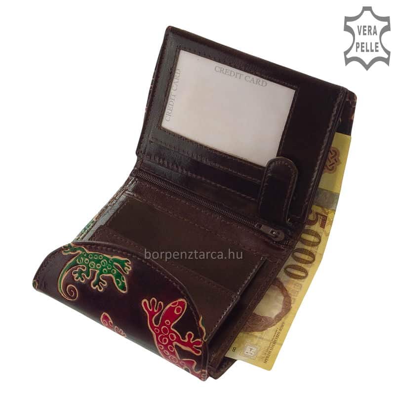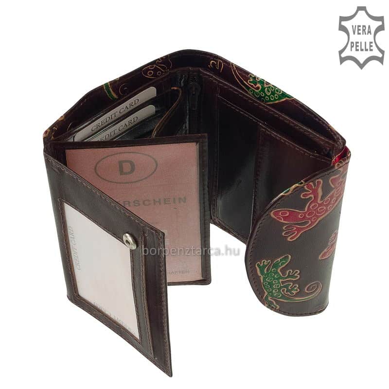 Minőségi bőrből készült mintás kézzel festett, divatos S Belmonte valódi bőr női pénztárca, praktikus funkciókkal ellátott modell.