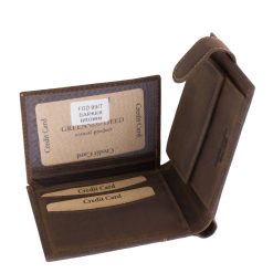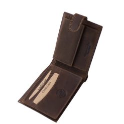Úgynevezett “vadász” vagy más néven vintage stílusú valódi bőr pénztárca férfi vásárlóink számára tervezett praktikus belsővel, natúr díszdobozos kivitelben.