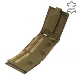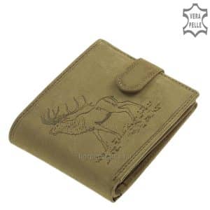 Valódi bőr vadász férfi pénztárca szarvas mintával. A modell külsejének két oldalát praktikus patentos átkapcsoló pánt zárja le.