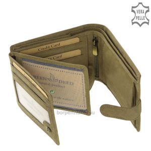 Ezt a vadász bőr pénztárca modellt díszdobozzal hozzuk forgalomba, mely natúr színű papírból készült és a GreenDeed márkajelzés dekoratív logója díszíti.